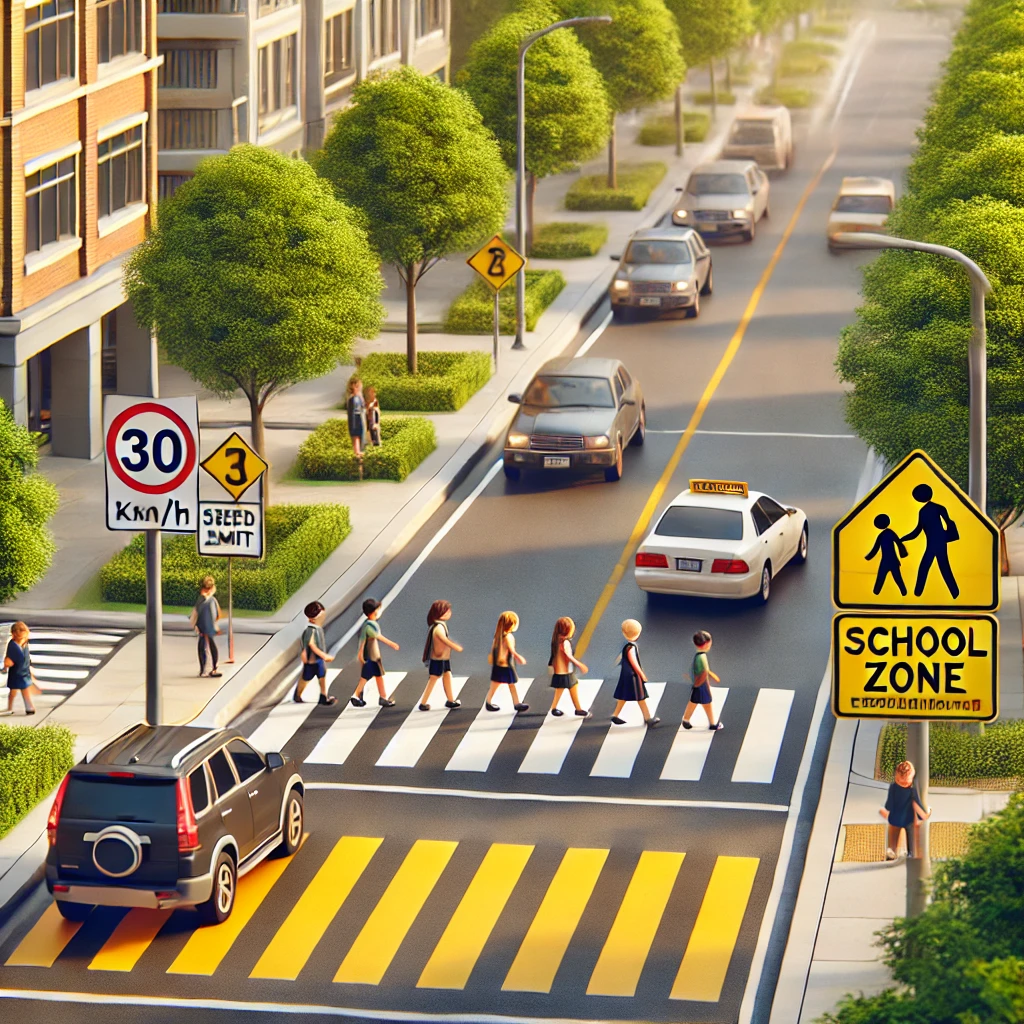 🔹 속도 제한 준수 – 보호구역 내에서는 반드시 규정된 속도를 지켜야 합니다.